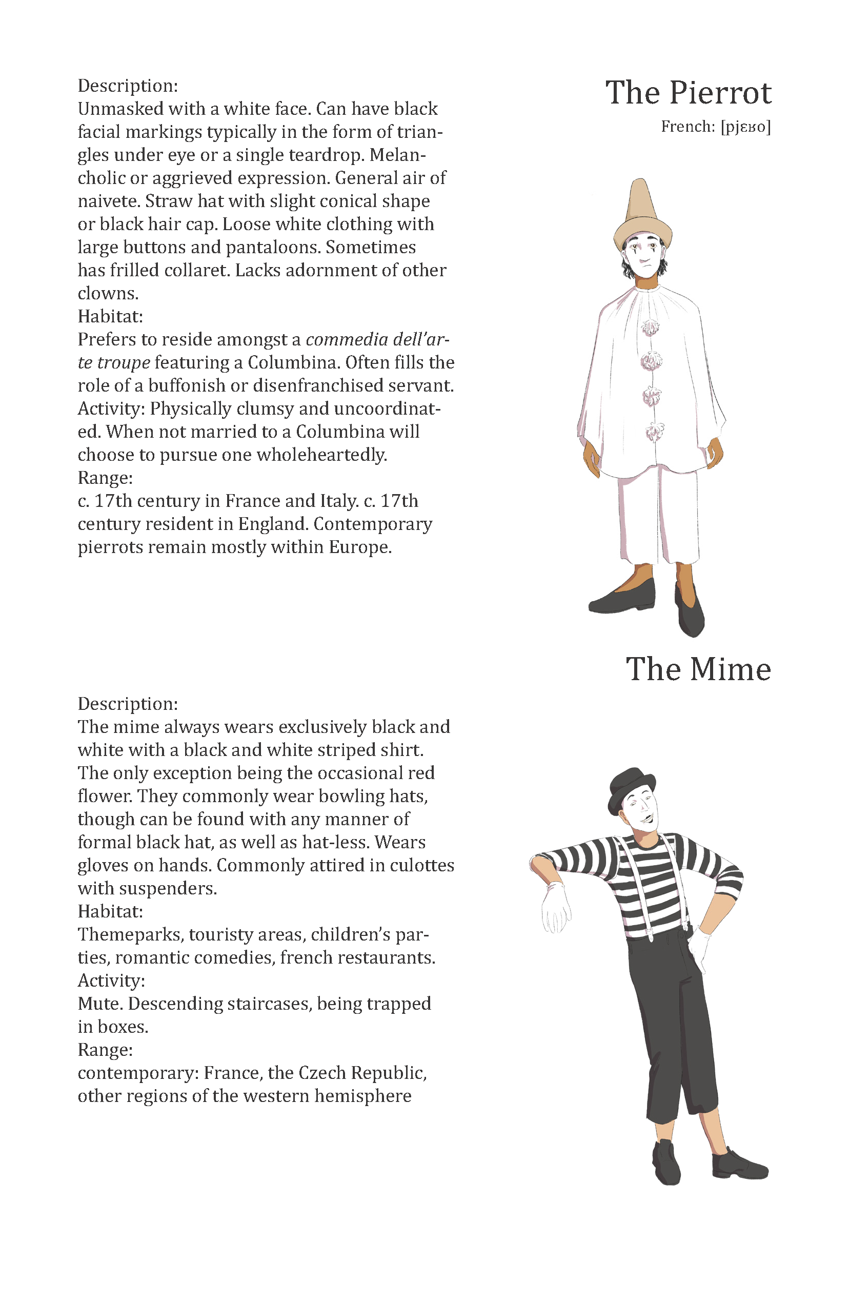 8 page zine parody of a field-guide about clowns